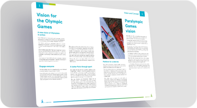 1 Vision and Concept 1 Vision for Paralympic the Olympic Games Games vision A new vision of Olympism Paris 2024 will offer a compelling demonstration of how investment in growing para-sport can deliver self- in action sustaining human, social and economic benefits. Paris 2024 will be memorable and meaningful Games, The Paris 2024 Paralympic Games will be the pinnacle delivered in a unique spirit of international celebration, of a seven-year, sport-led journey towards greater in the birthplace of the modern Olympic Movement. participation and social inclusion of people with an impairment in France. The Games will focus and build upon the original By using the opportunity to tackle significant barriers meaning of Olympism, to provide a case study of what to participation, Paris 2024 will act as a watershed ‘a better world through sport’ can mean in the modern This network will be the engine that will turn Games age. inspiration into participation, especially among hard- in the development of Paralympism in France, while to-reach groups. Paris 2024 will prioritise a progressive simultaneously improving access and inclusion for One hundred years after Paris last hosted the Olympic model of collaboration with a range of public and everyone with an impairment Games, the 2024 Games will demonstrate, in a new era, private organisations to embed sport and the Olympic The Paralympic Games will play a central role in the how sport remains relevant to societies everywhere as Values into other areas of public policy; and to deliver vision that Paris wants to share with the world, centring a bridge to achieving crucial social and public policy new sport-led social programmes targeting areas as on the true value and potential of sport in society. goals. diverse as workplace safety, obesity and mental health. The legacy of Paris 2024 will serve everyone involved Paris 2024 will showcase and honour the courage, Overall, the aim is to engage 80% of the French achievement and determination of the world’s greatest in the global sports movement – and all who believe in population in regular physical activity, inspired by the athletes, in a city where the concept of sport at the sport as a force for good in our world. 2024 Games. Platform for a new era service of humanity was first brought to life. Paris 2024 will deliver a flawless global celebration, The Paralympic Movement will benefit from world- Engage everyone drawing on France’s world-famous art de vivre and the class delivery and a determination to add value to the A better Paris through sport beauty and infrastructure of its capital city. Paralympic brand, in a nation where spectator and commercial interest in para-sport is growing all the The Paris 2024 vision is underpinned by a commitment Paris 2024 will also act as a powerful catalyst to the The city will also serve as an ideal stage to launch a time. to active healthy living and sport for all. ‘Grand Paris’ initiative – one of the greatest evolutions new chapter in Olympism. France is the world’s most Paris 2024 will be the catalyst to unlock the full capacity in the history of the City of Light. It will deliver a visited country, with 80 million overseas guests a year. and potential of France’s national sports system, whose dynamic, new metropolitan area, uniting the beauty, And for centuries, Paris has been a destination for all unique assets include more than 265,000 community economic strength and historical assets of central Paris those seeking to collaborate, innovate and inspire on sports facilities and a human network comprising more with the youth and energy of its suburban belt. a global scale. than one quarter of the national population. The new Olympic and Paralympic Village will be Paris 2024 aims to harness the same spirit of located in Seine – Saint-Denis, one of the youngest partnership, creativity and inspiration to successfully and most diverse parts of the new Grand Paris. This deliver the first Games fully conceived in the Olympic investment will be aligned with a wider programme of Agenda 2020 era. The ambition is to maximise the new housing, amenities and transport links helping to Games’ potential to be a catalyst for engagement, close the significant health, wealth and opportunity innovation and development, in the city in which Pierre gaps that exist between central Paris and its suburbs. de Coubertin first imagined a world united by sport. 8 - PARIS 2024 PARIS 2024 - 9